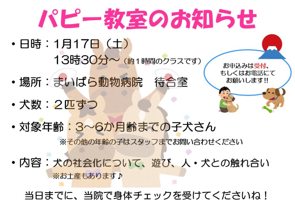 (※当院が初めての方は、一度診察(健康チェック)にお越しいただいてからパピー教室参加となります。)