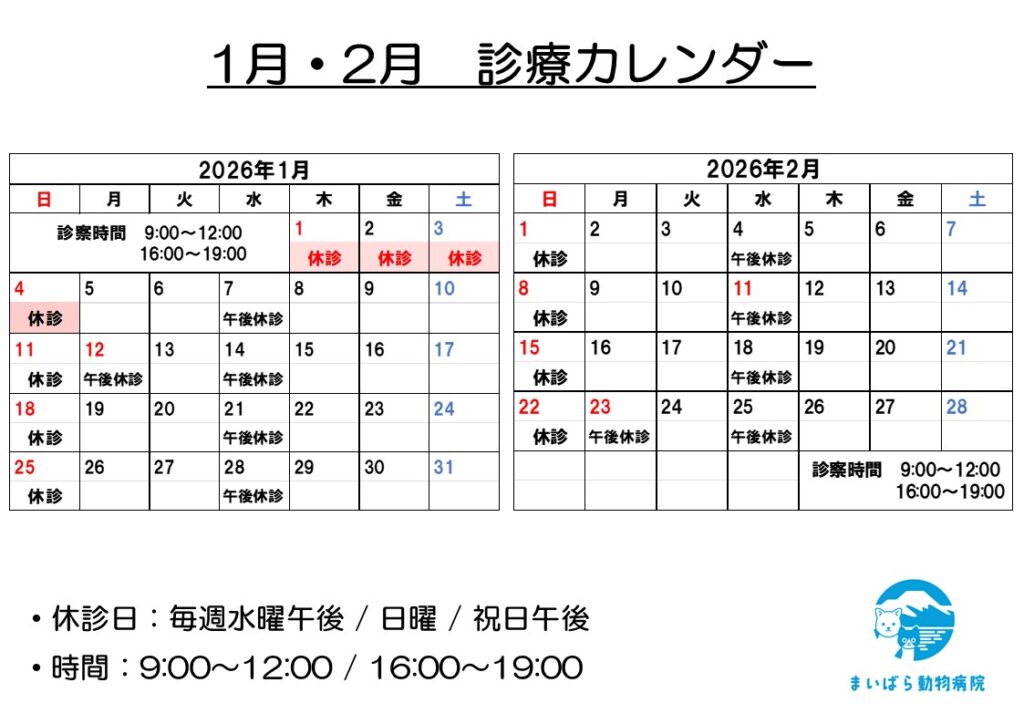 1月・2月の休診日のお知らせです。