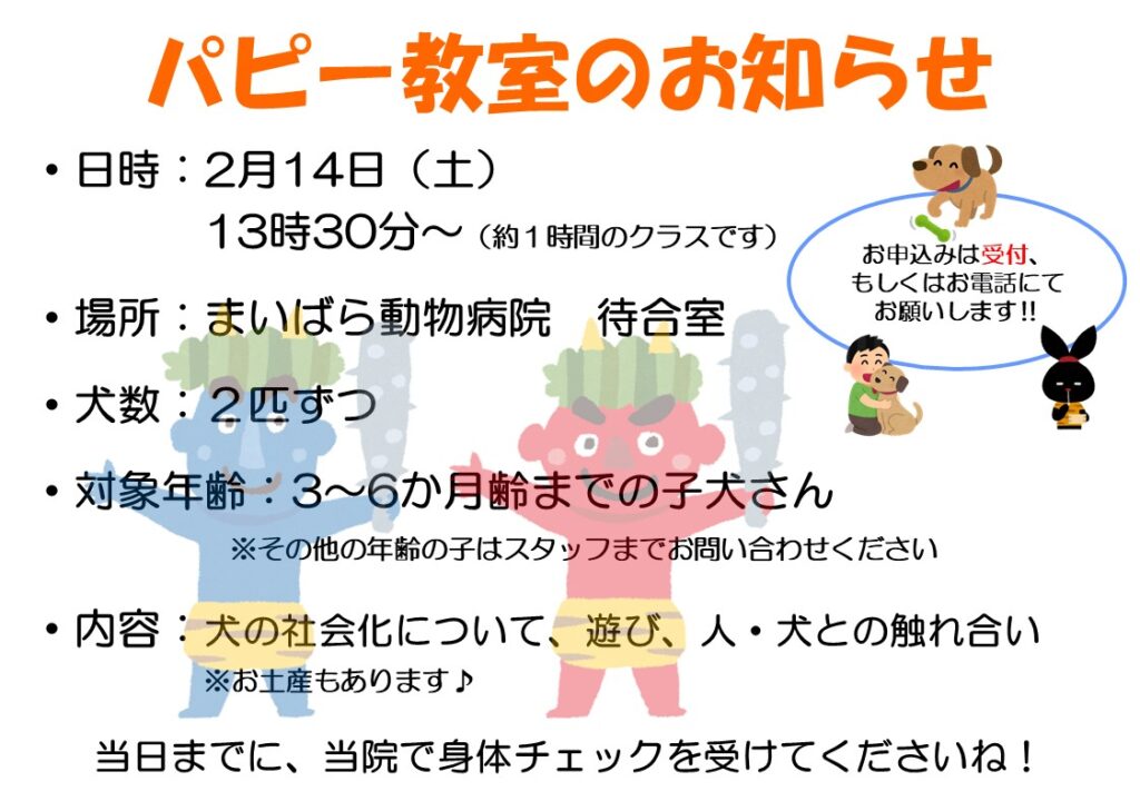 (※当院が初めての方は、一度診察(健康チェック)にお越しいただいてからパピー教室参加となります。)